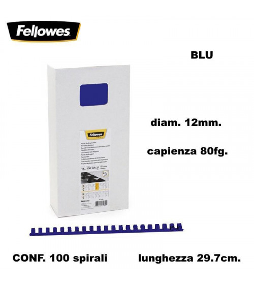 FELLOWES SPIRALI DIAM.12 100PZ.80FG. BLU-RILEGARE