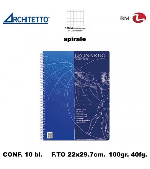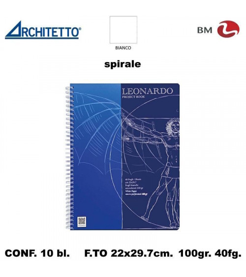 ARCHITETTO BLOCCO SPIRALE LEONARDO 10M A4 40fg.100gr.[10PZ] 60827