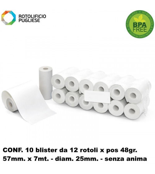 ROTOLO 57MM.TERMICO SENZA ANIMA 48gr.120PZ.