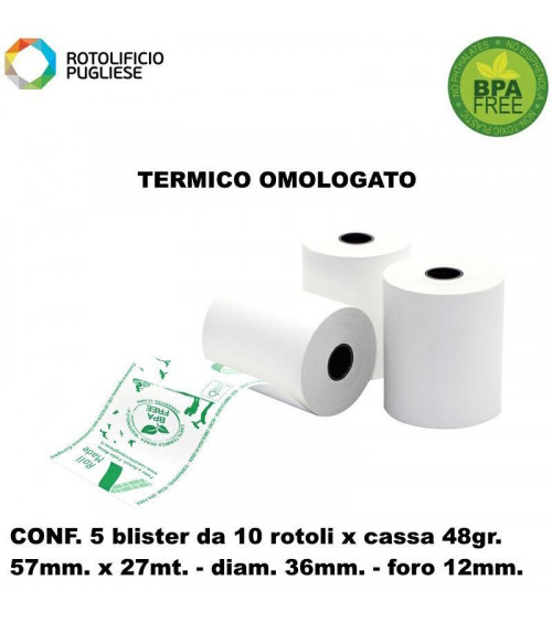 ROTOLO 57MM.30MT. TERMICO OMOLOGATO 48gr.50PZ.
