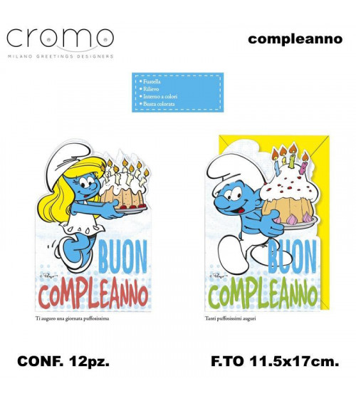 CROMO BIGLIETTI COMPLEANNO PUFFI SAGOMATI PU.10793 [12PZ]