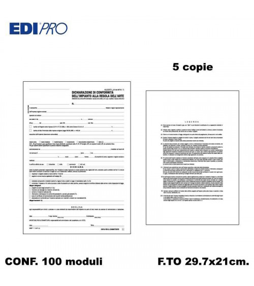 EDIPRO DICHIARAZIONE CONFORMITA' IMP. 5C. 29.7x21 E9071 [100PZ]