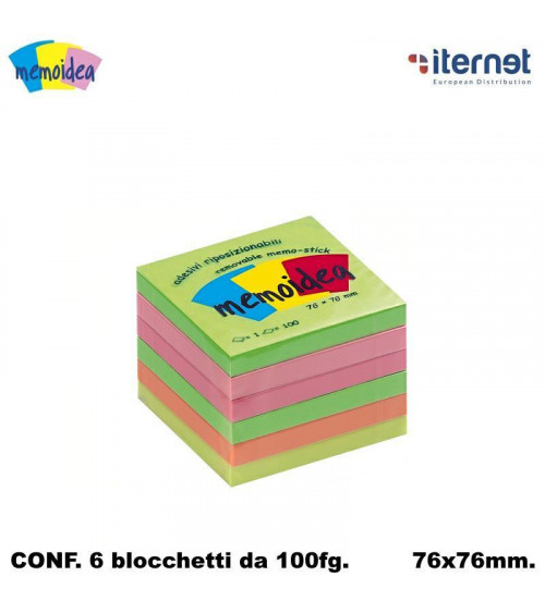 MEMOIDEA NOTES ADESIVI 76x76 COLORATI NEON [6PZ]