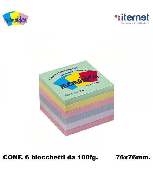MEMOIDEA NOTES ADESIVI 76x76 COLORATI PASTELLO [6PZ]