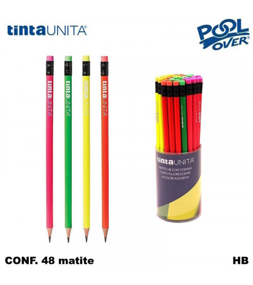 TINTA UNITA MATITA CON GOMMA HB FLUO 48pz.41862