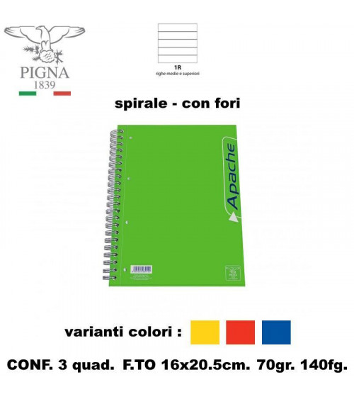 APACHE PIGNA QUADERNO SPIRALE CON FORI 1R-140FG. [3PZ]
