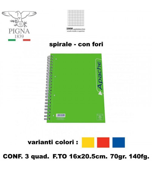 APACHE PIGNA QUADERNO SPIRALE CON FORI 5MM-140FG. [3PZ]