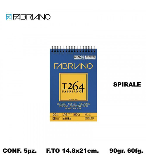 FABRIANO SCHIZZI 1264 A5 90gr.60fg. [5PZ] BLOCCO SPIRALE