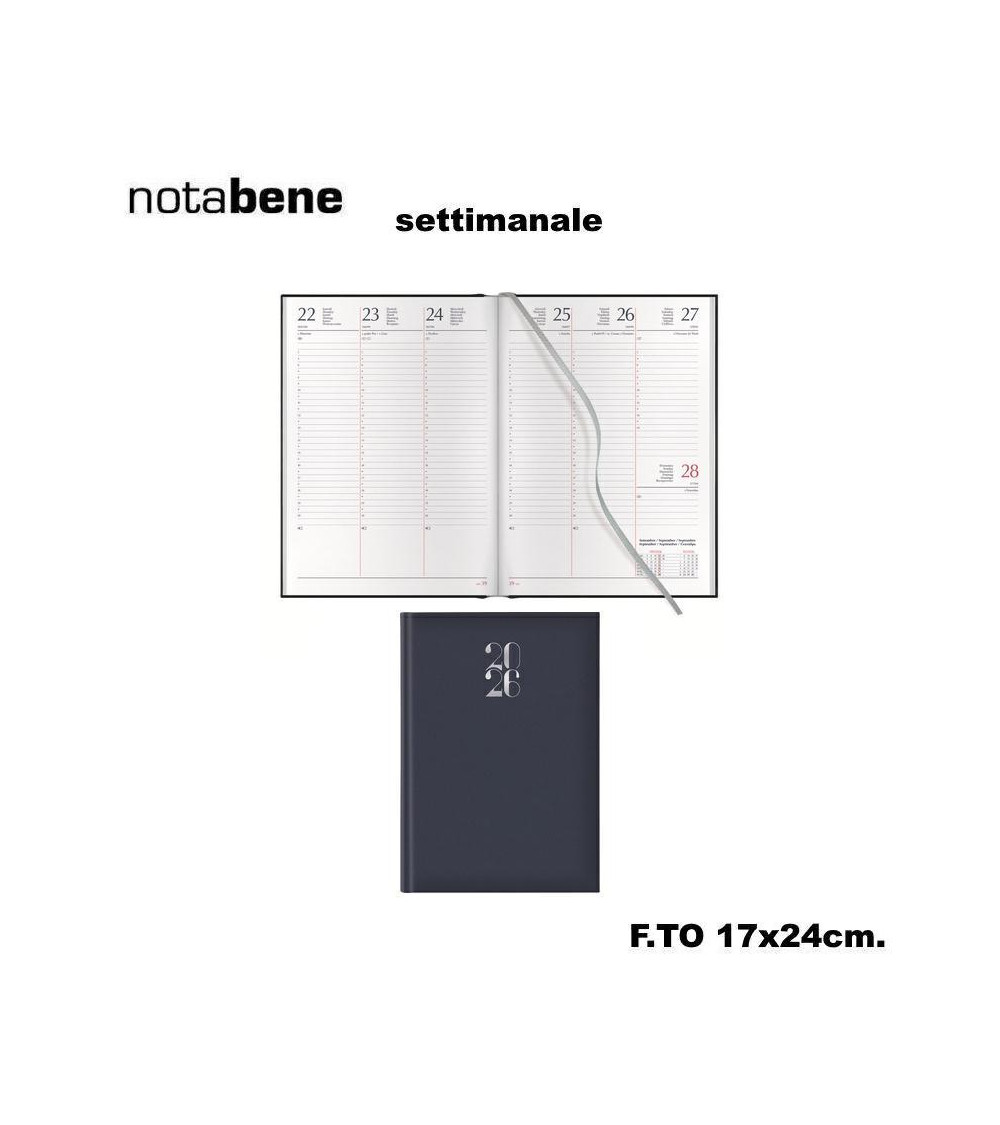 NOTABENE AGENDA SETTIMANALE 17X24 401C GOMMATO BLU