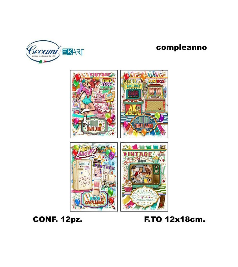 CECAMI BIGLIETTI BUON COMPLEANNO VINTAGE 00194 [12PZ]