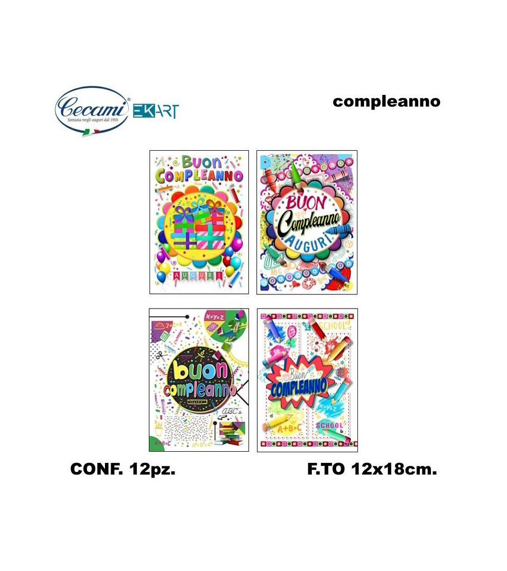 CECAMI BIGLIETTI BUON COMPLEANNO SCUOLA 00181 [12PZ]