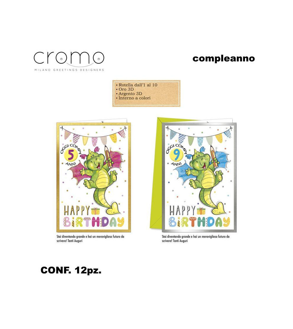 CROMO BIGLIETTI COMPLEANNO BAMBINI CON ROTELLA BC.8140 [12PZ]
