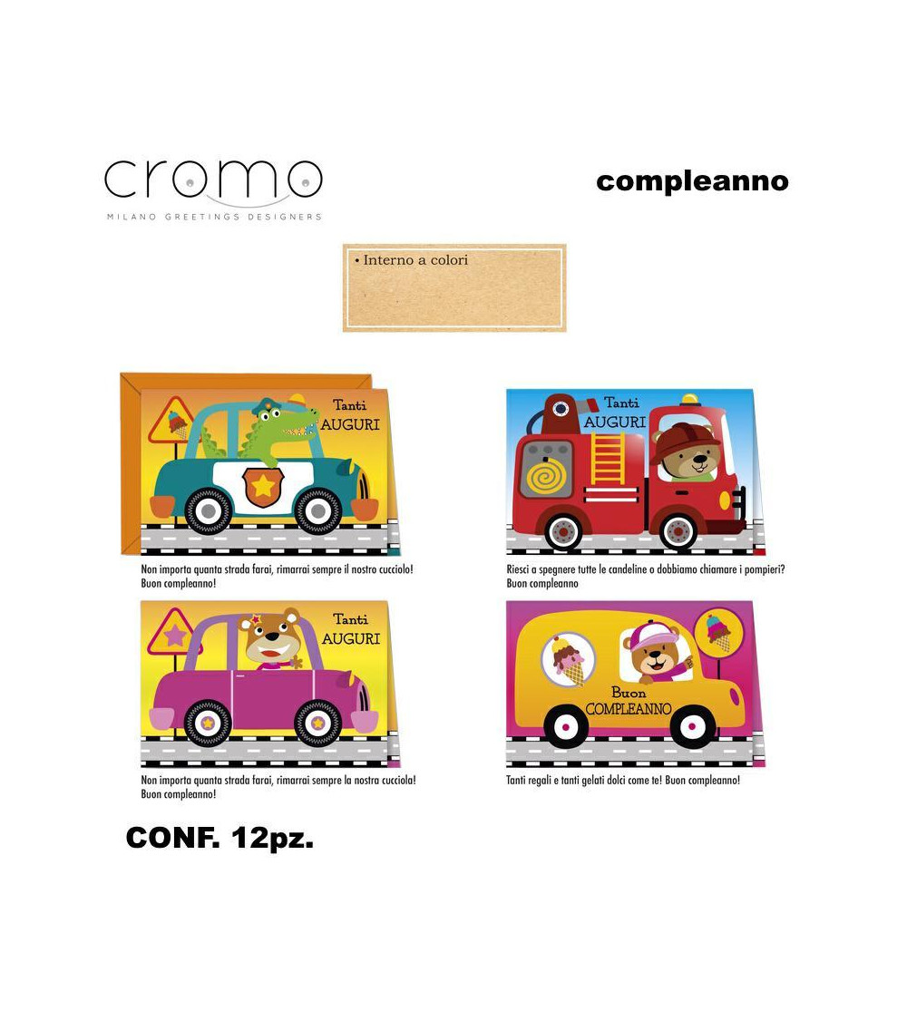 CROMO BIGLIETTI COMPLEANNO BAMBINI BC.9044 [12PZ]