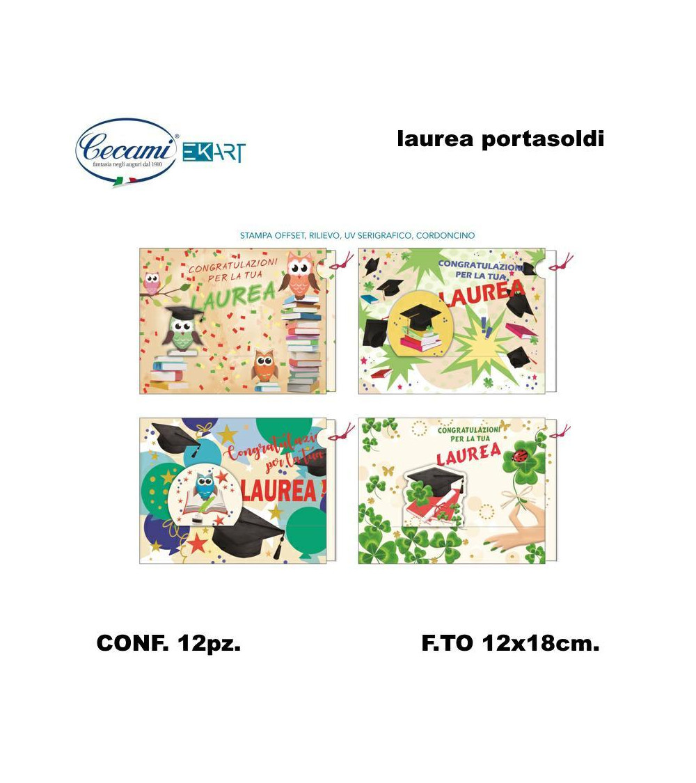 CECAMI BIGLIETTI AUGURI LAUREA PORTASOLDI TIRETTE 00098 [12PZ]