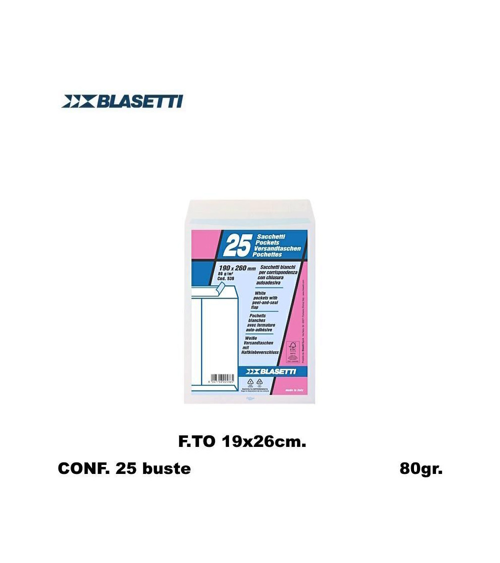 BLASETTI BUSTE A SACCO 19X26 POSTALI 0536 25PZ