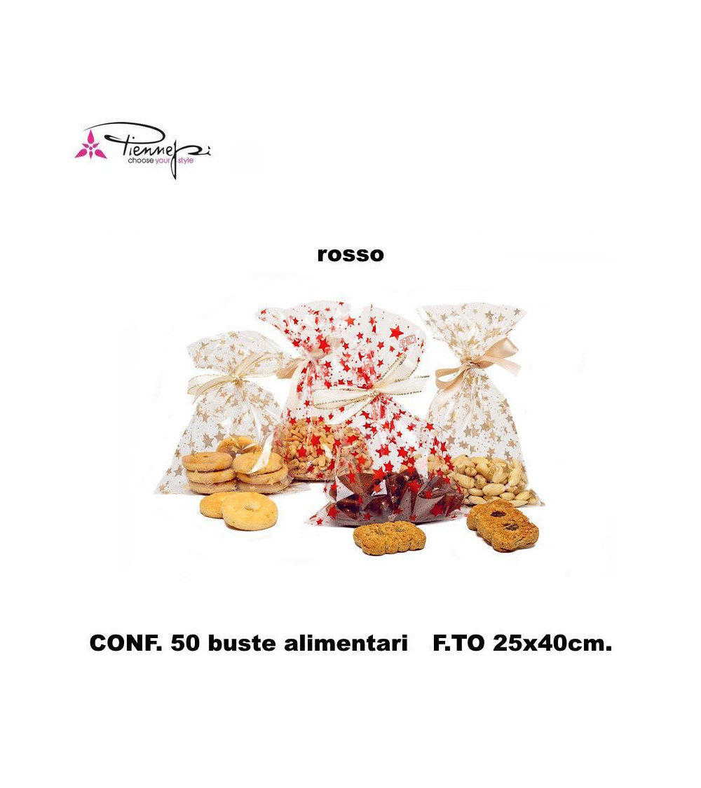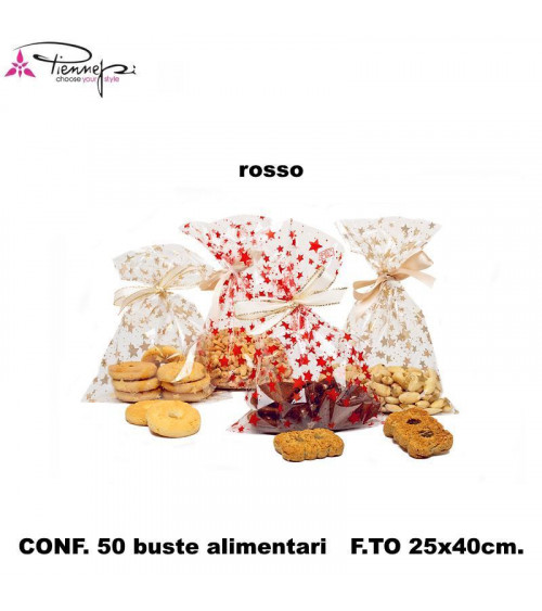 PNP BUSTE ALIMENTARI TRASPARENTI ROSSO STARRY 25x40 [50PZ]