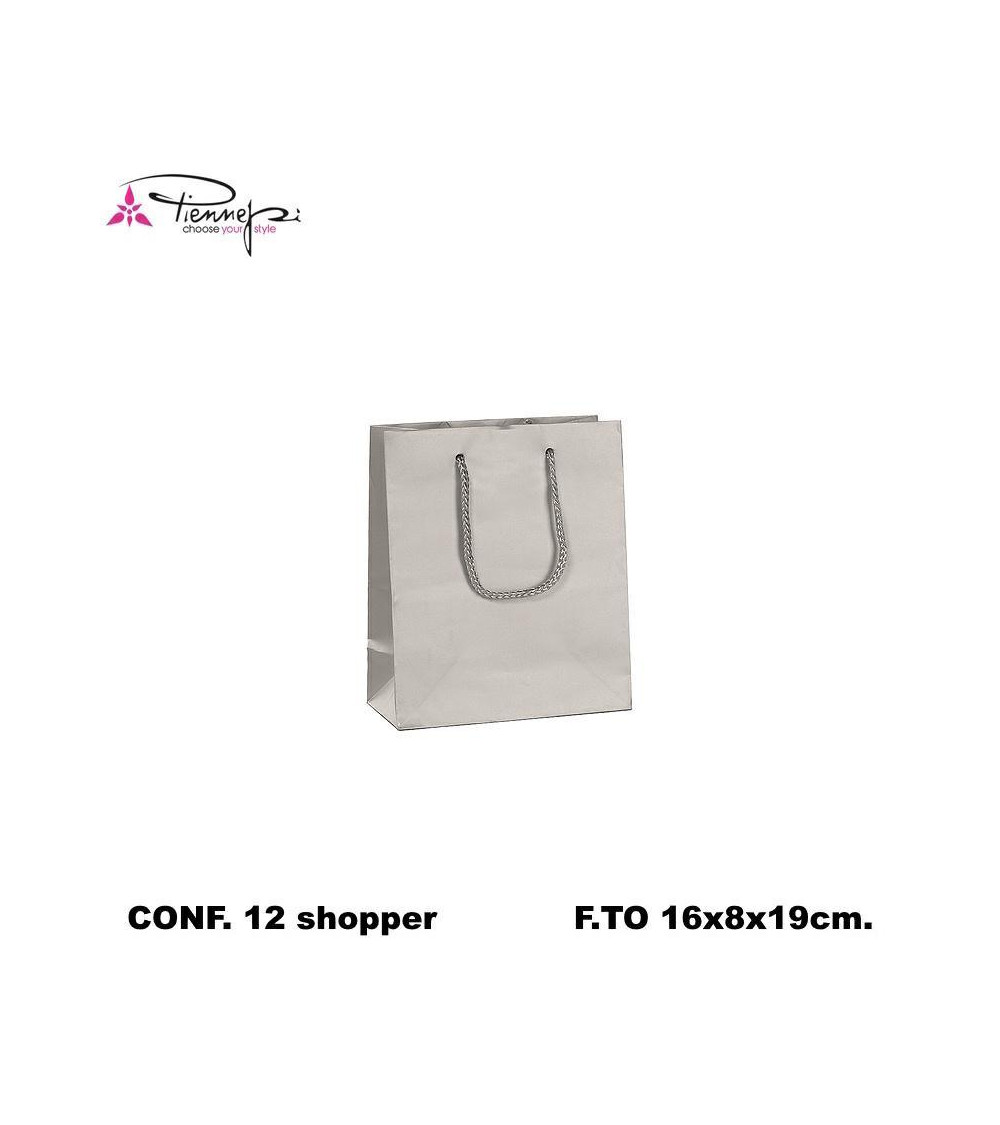 PNP BUSTE REGALO C/MANICO 16L 19H 8D ARGENTO-SHOPPER [12PZ]