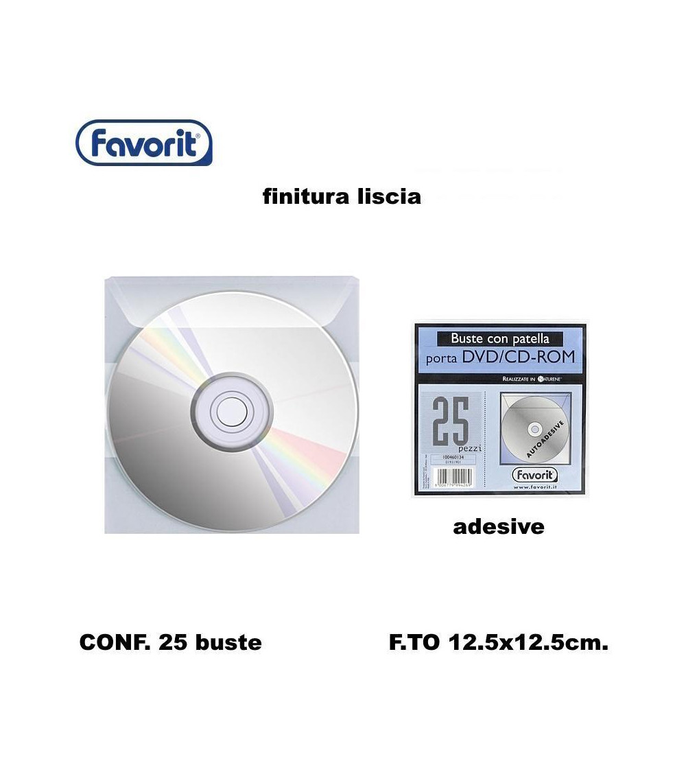 FAVORIT BUSTE PORTA CD ADESIVE 25PZ. CON PATELLA
