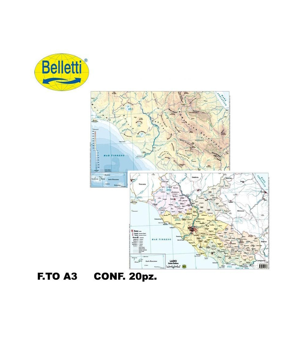 BELLETTI CARTINA FISICO POLITICA LAZIO [20PZ]
