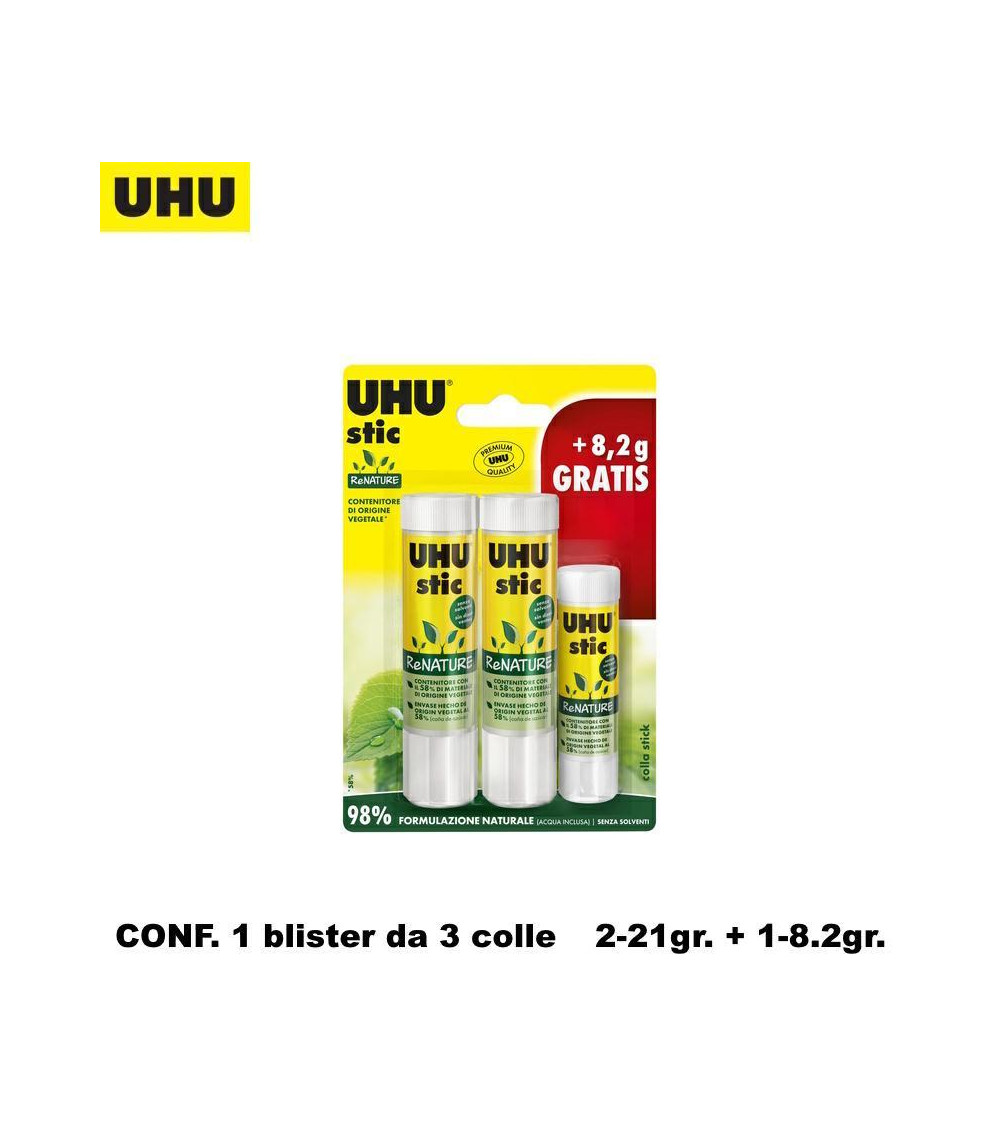 UHU COLLA STICK RENATURE BLISTER 2pz21gr + 1pz8.2gr