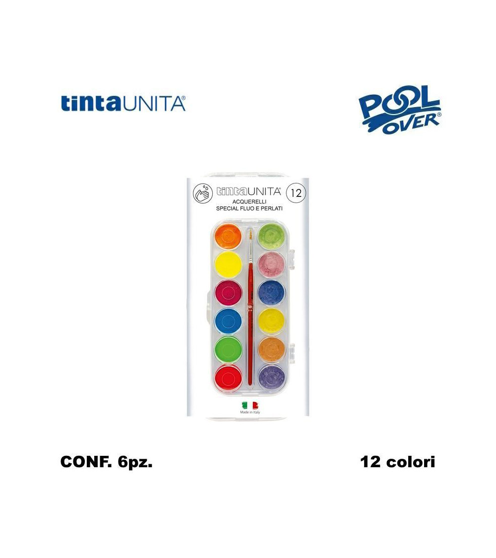 TINTA UNITA ACQUERELLO SPECIAL FLUO+PEARL 030+PENNELLO 12COL. [6PZ]