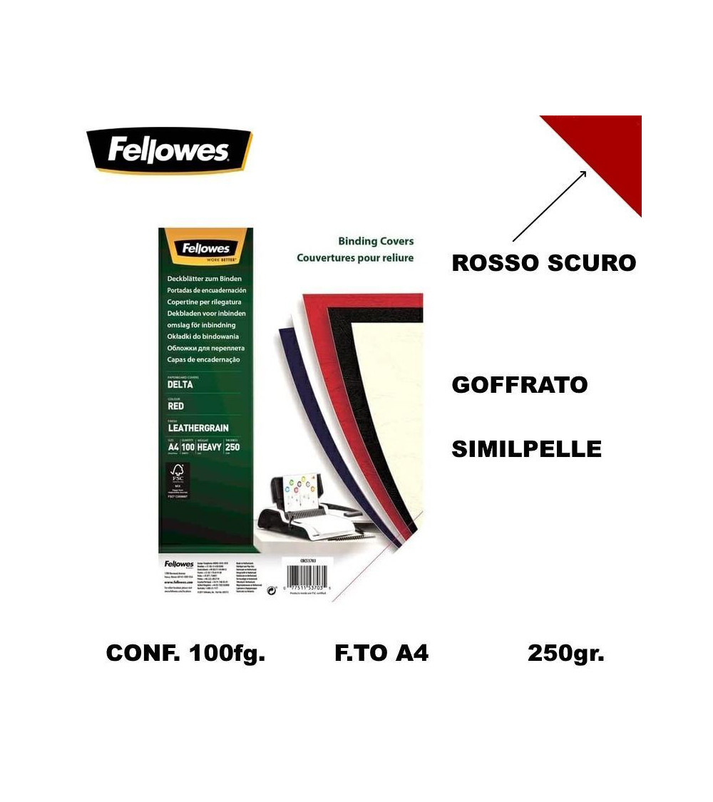 FELLOWES COVER A4 240gr.100fg.ROSSO-CARTONCINO RILEGARE