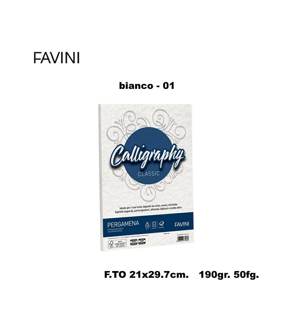 FAVINI PERGAMENA CALLIGRAPHY 190GR.50FG.A4 BIANCO 01