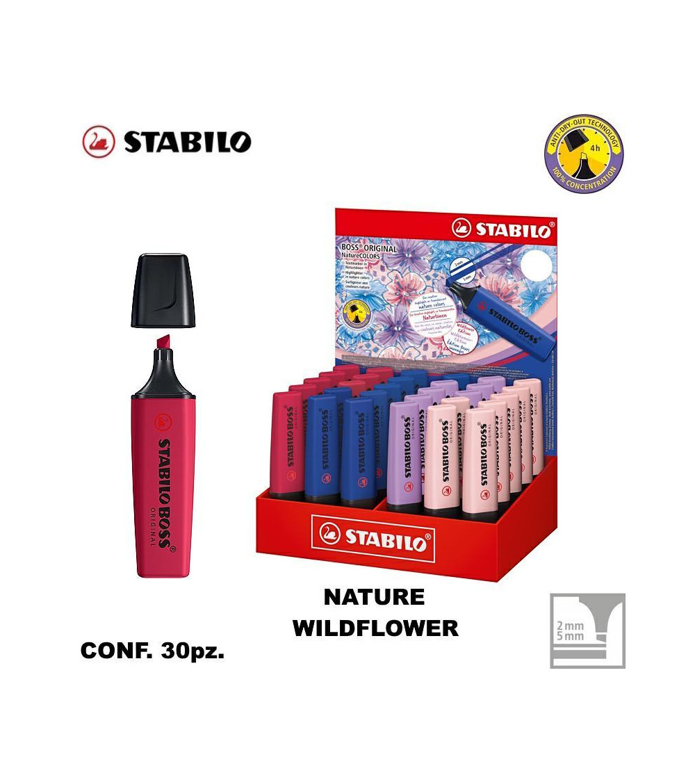 STABILO BOSS NATURE COLORS WILDFLOWER 30pz.ESPOSITORE EVIDENZIATORE