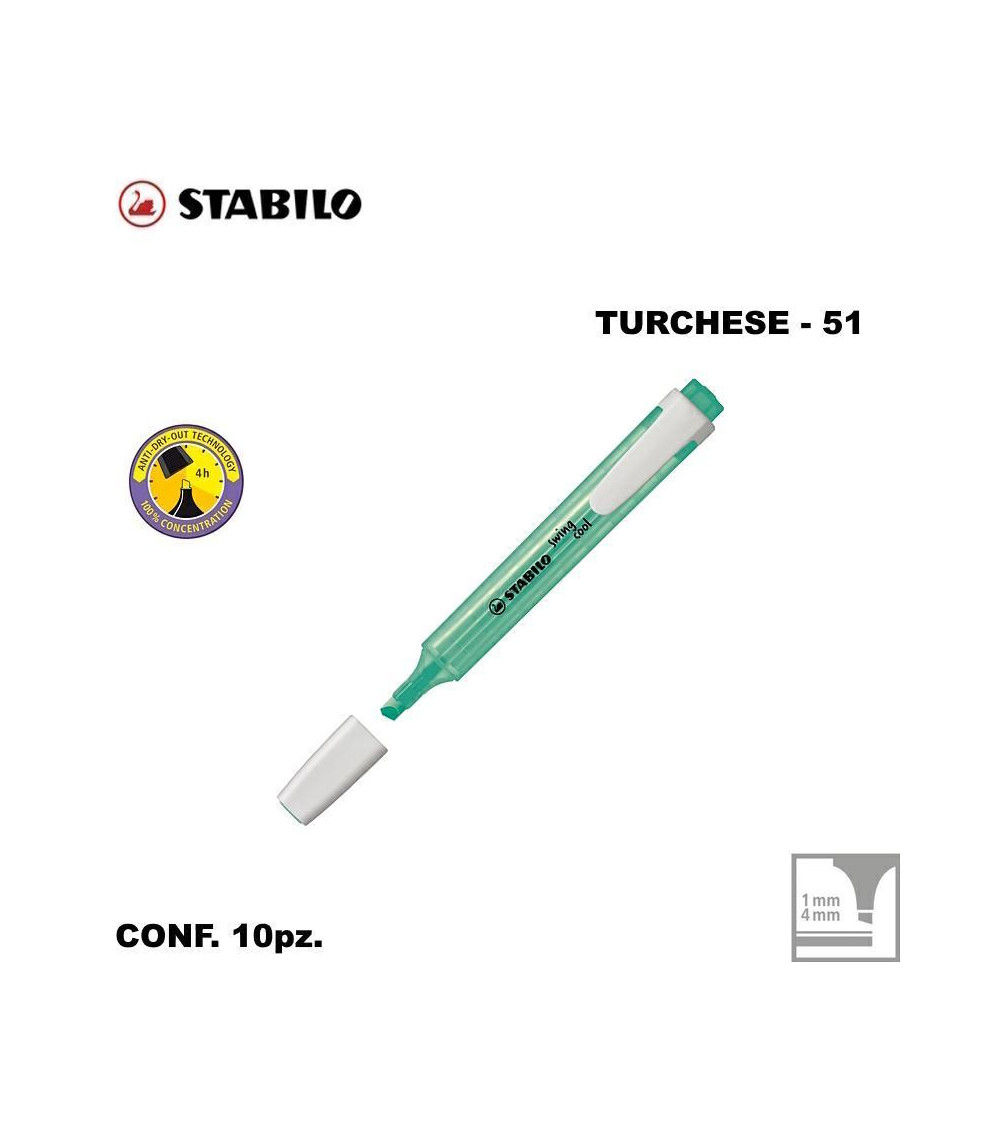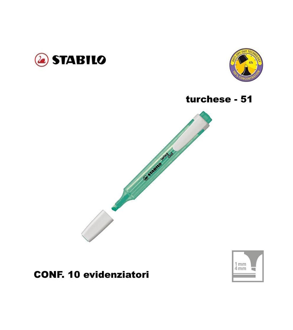 STABILO SWING COOL TURCHESE EVIDENZIATORE-51 [10PZ]
