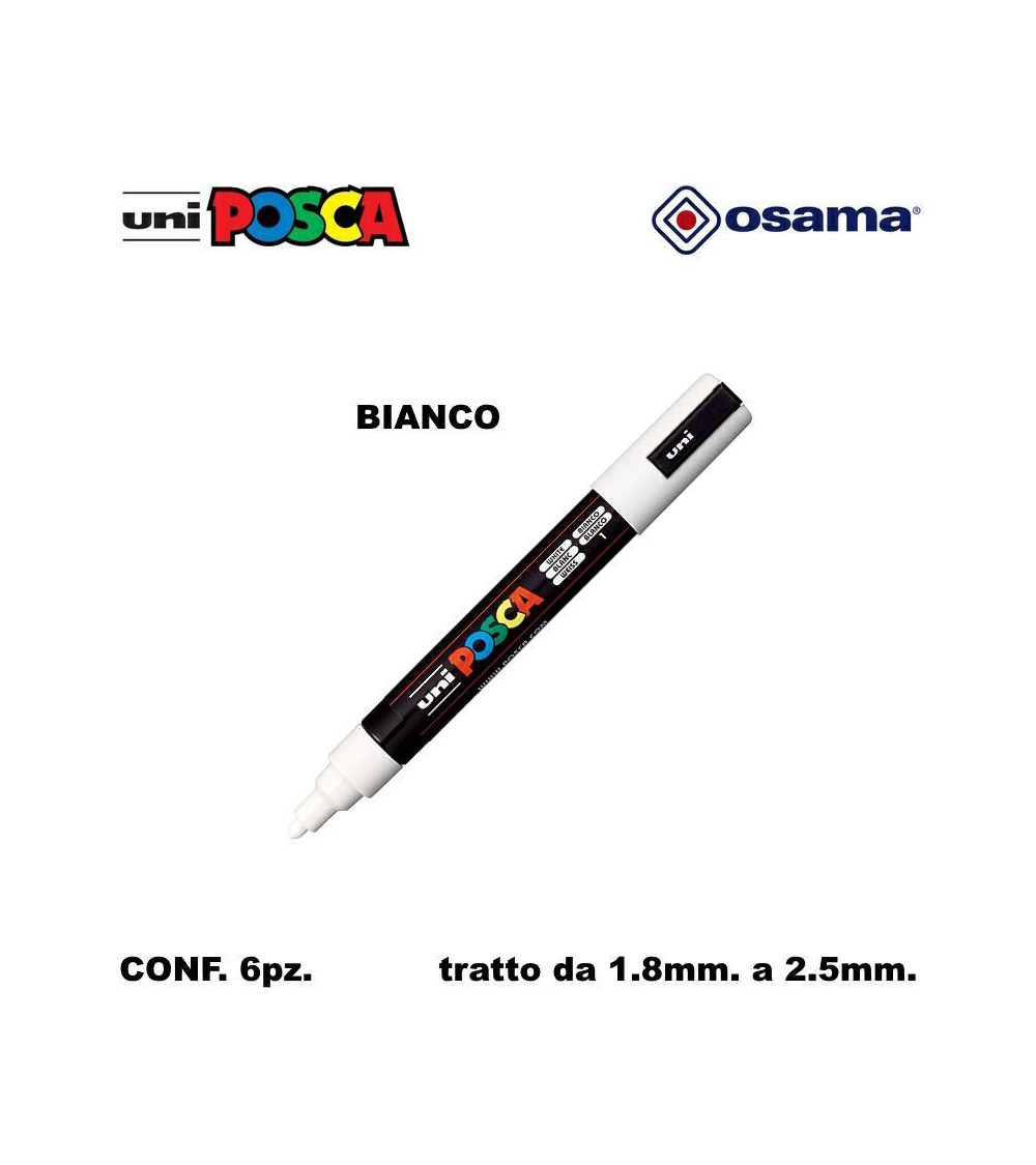 OSAMA MARCATORE UNI POSCA PC5 6PZ. BIANCO-P.MEDIA