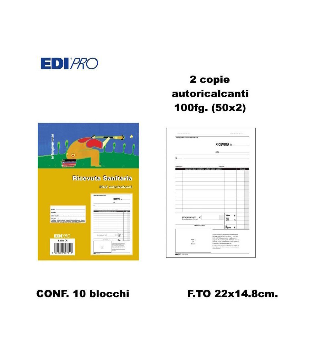EDIPRO RICEVUTE SANITARIE 22x14.8 2C. E5275CN [10PZ]