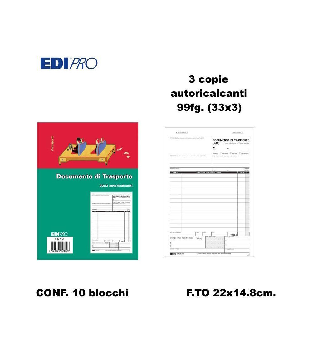 EDIPRO DDT 22x14.8 3C. E5215CT-DOCUMENTO TRASPORTO [10PZ]