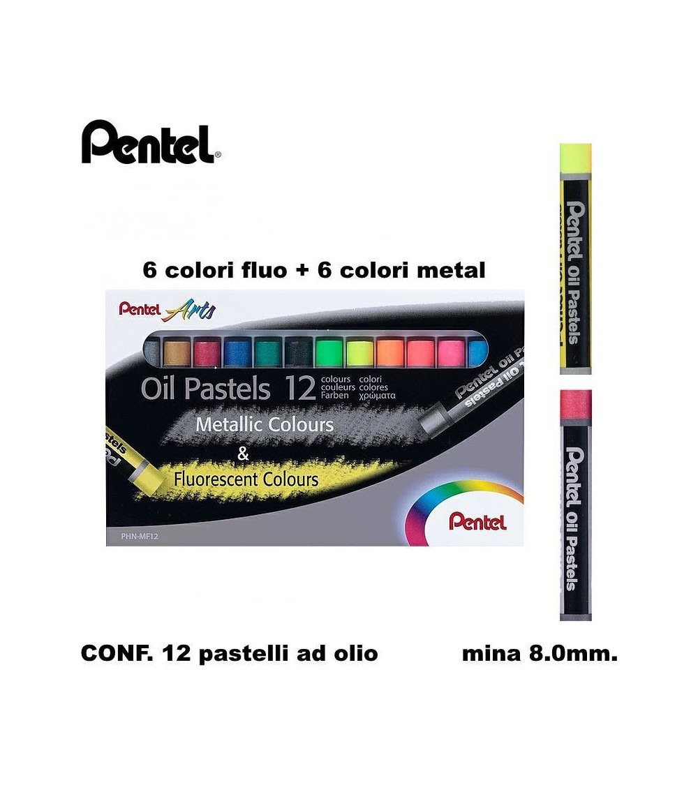 PENTEL PASTELLO OLIO FLUO/METAL 12COL.PENTEL