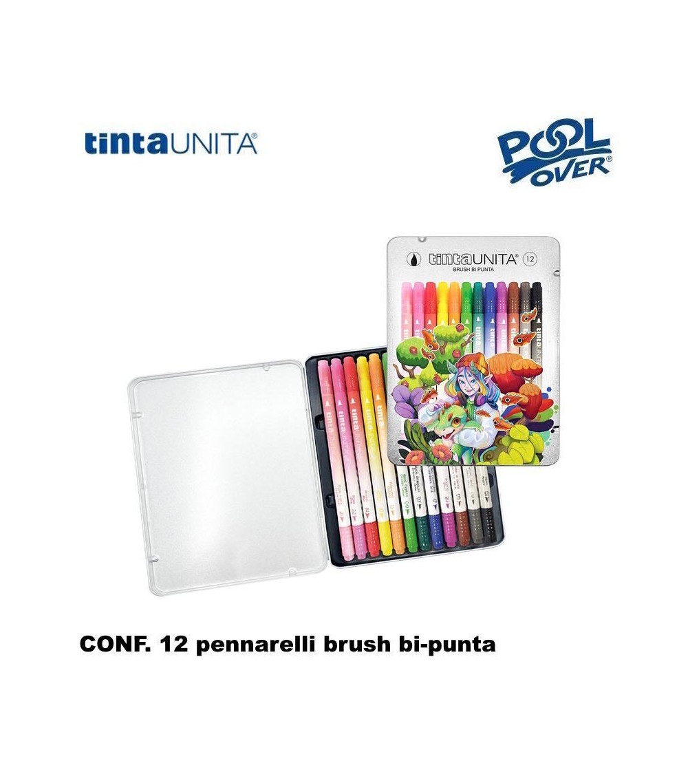 TINTA UNITA PENNARELLO BRUSH BI-PUNTA FRAFFROG 12col.