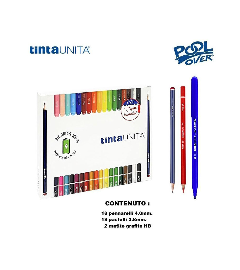 TINTA UNITA RICARICA ASTUCCI 18 PENNARELLI+18 PASTELLI+MATITE 43507