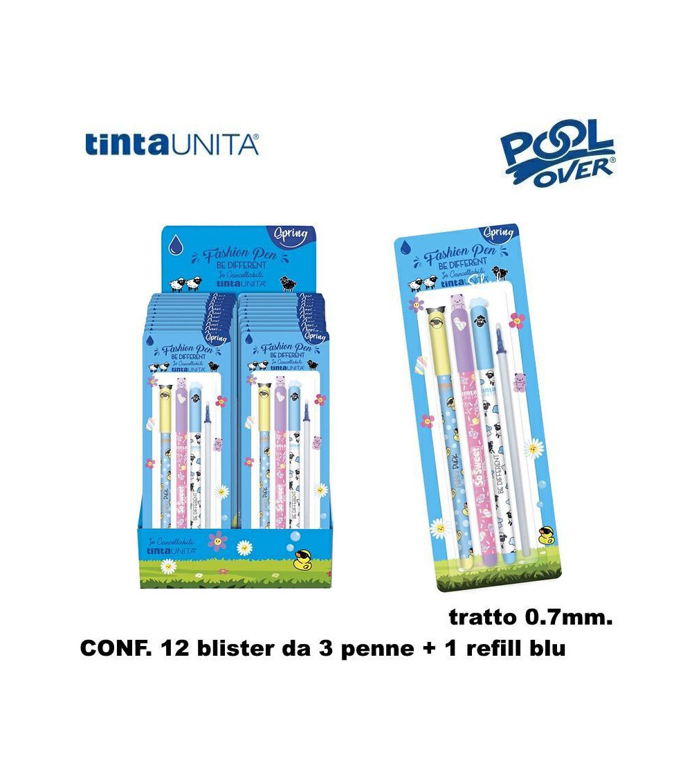 TINTA UNITA ESP 12 SET 3 PENNA SFERA CANCELLABILE SPRING+1 REFIL BLU