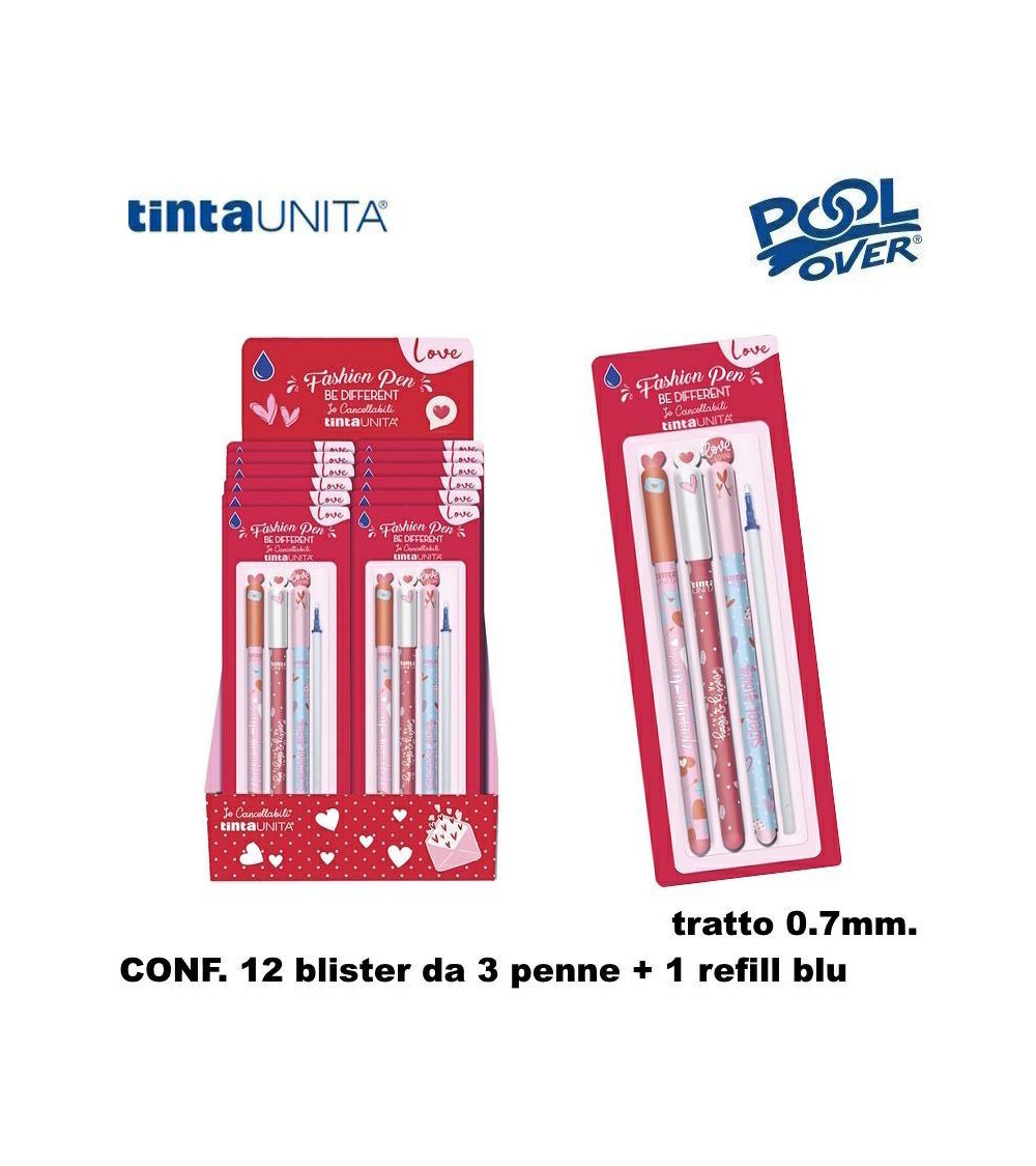 TINTA UNITA ESP 12 SET 3 PENNA SFERA CANCELLABILE LOVE+1 REFILL BLU