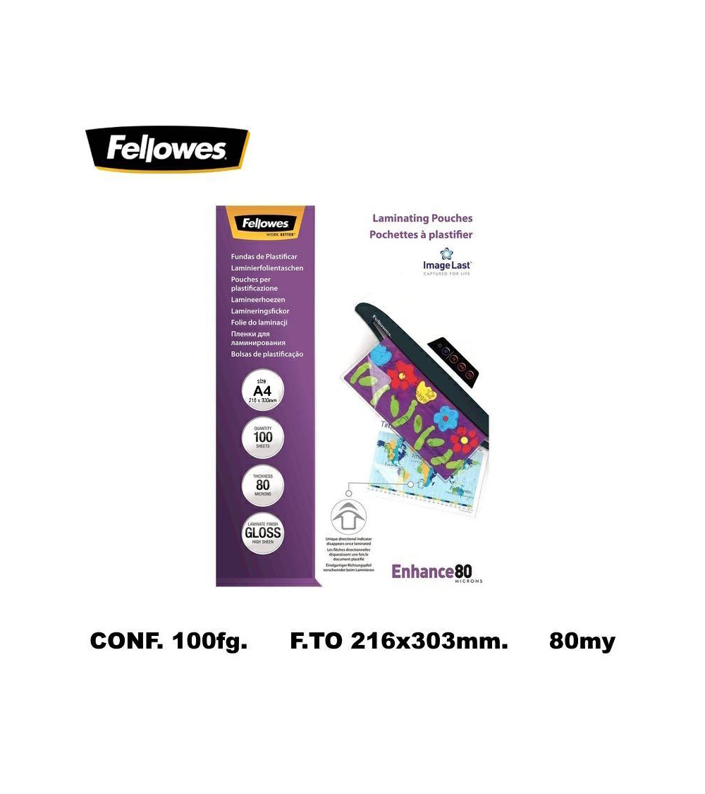 FELLOWES POUCHES A4 80MIC.100PZ. PER PLASTIFICARE