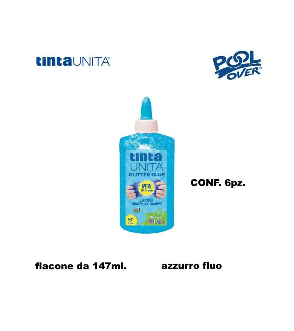 TINTA UNITA COLLA GLITTER 147ML. 6PZ. AZZURRO FLUO 50506