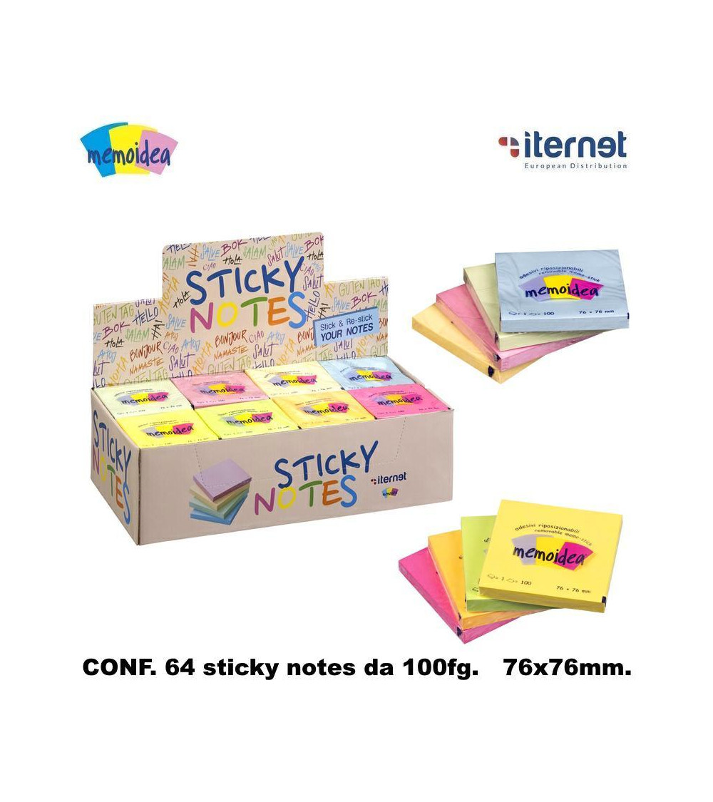 ITERNET DISPLAY 64 NOTES RIPOSIZIONABILI 76x76 100fg.FLUO/PASTEL