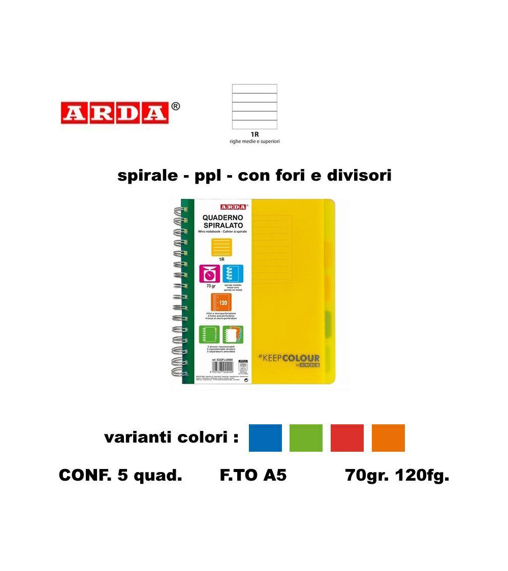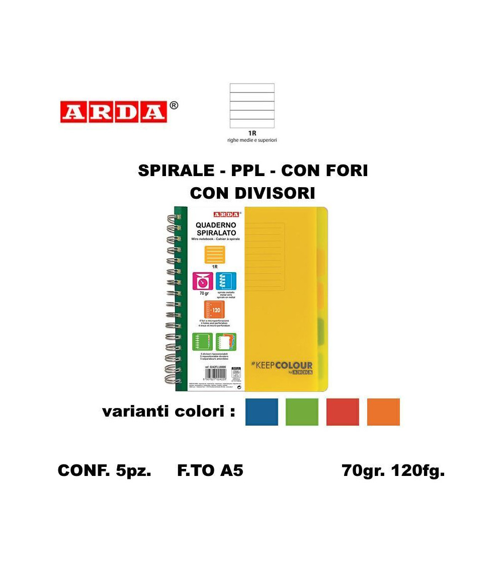 ARDA QUADERNO SPIRALE PPL FORI + DIVISORI 120fg. 1R [5PZ]