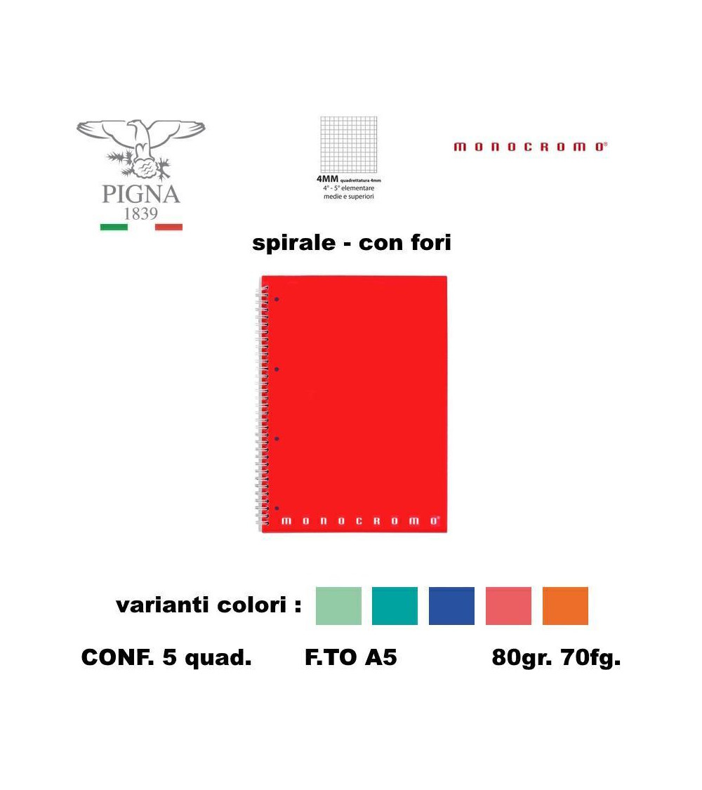 MONOCROMO QUADERNO SPIRALE FORI 4MM [5PZ]