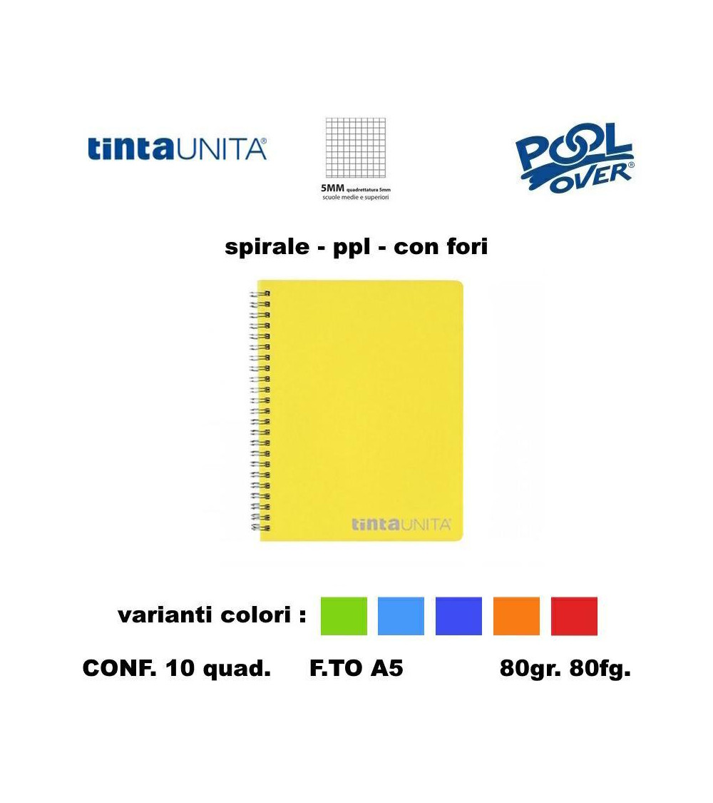TINTA UNITA QUADERNO SPIRALE PPL FORI 80FG. 5MM 98944 [10PZ]