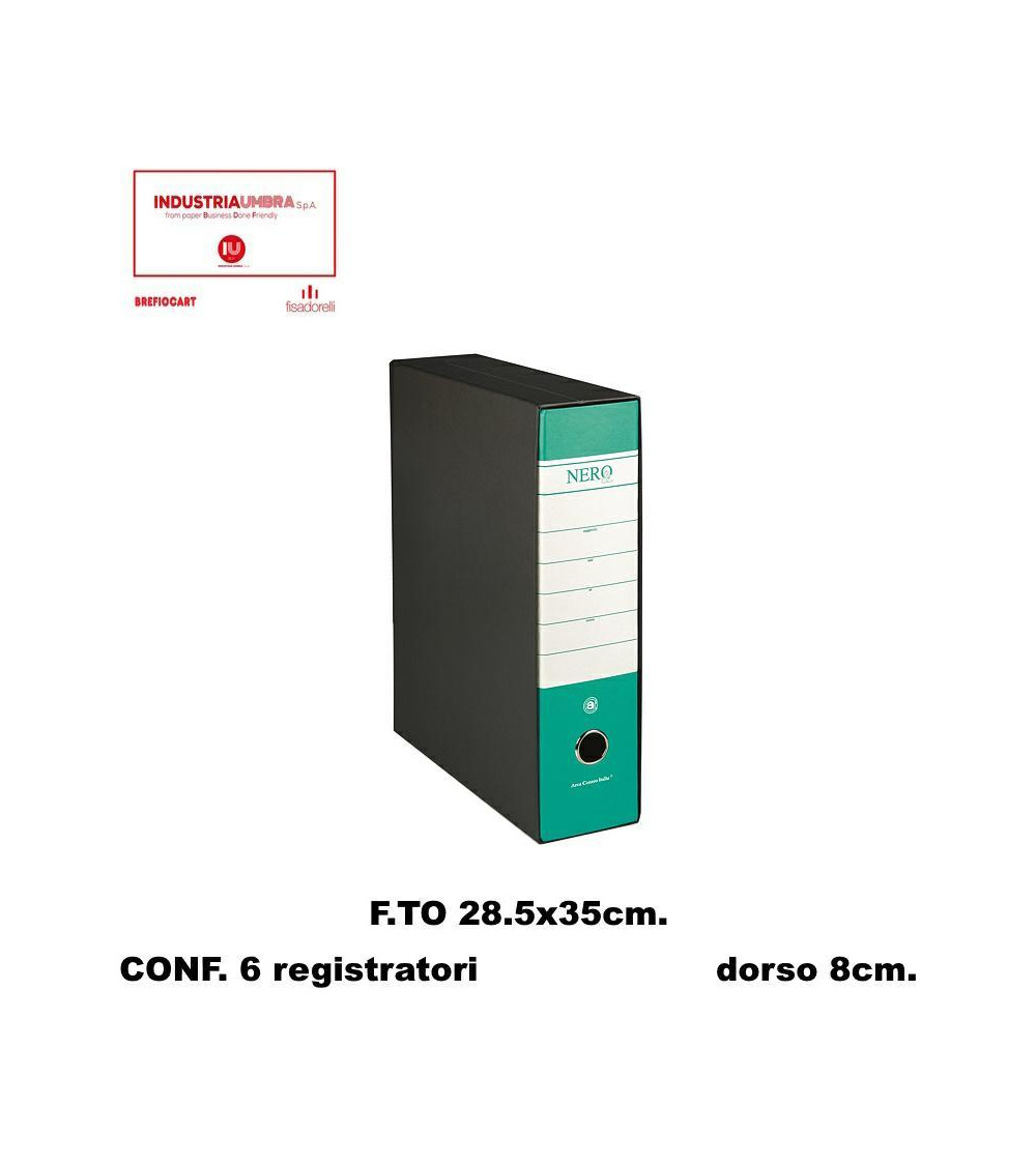 BREFIOCART REGISTRATORE NERO 28X35 DORSO 8 VERDE