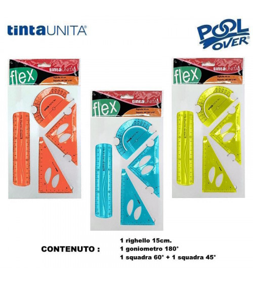 TINTA UNITA SET FLEXI MINI RIGHELLO 15cm.+GONIOMETRO 180+2 SQUADRE