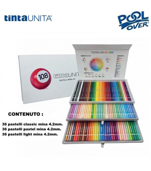 TINTA UNITA CASSETTIERA MAGNETICA 3 PIANI 108 PASTELLI 36+36+36