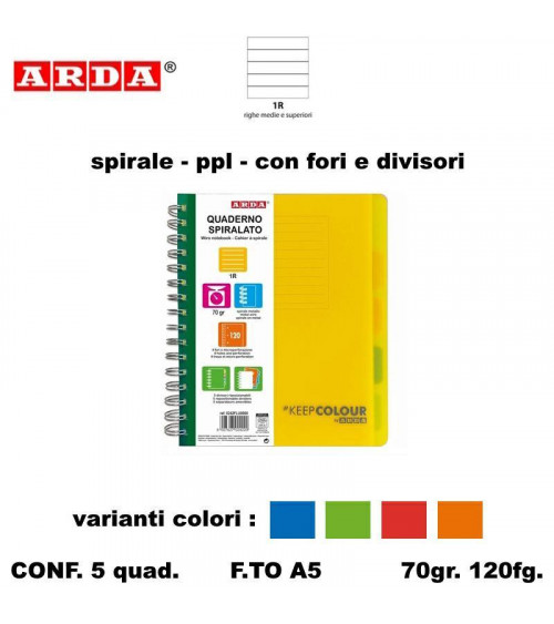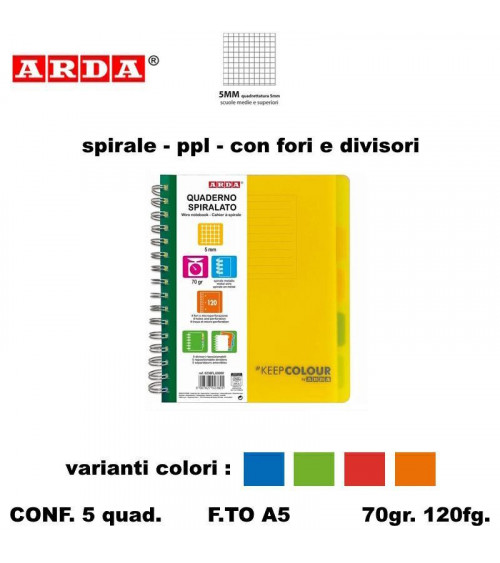 ARDA QUADERNO SPIRALE PPL FORI + DIVISORI 120fg. 5MM [5PZ]
