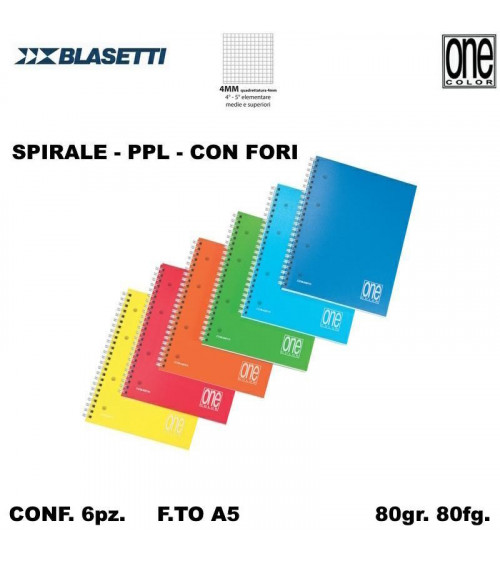 BLASETTI QUADERNO SPIRALE FORI 80fg.PPL ONE COLOR 5MM [6PZ]